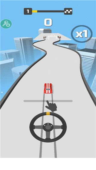2、正式开始之后,赛车会自动启动,而你需要做的就是控制赛车的方向,通过自由滑动屏幕来控制方向盘改变方向
