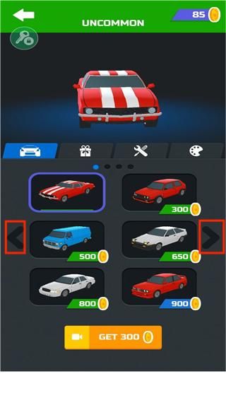 2、在商店中有着大量的赛车,你可以通过左右按键来查看更多的赛车,在礼物界面中都是一些需要通过关卡才能解锁的车辆
