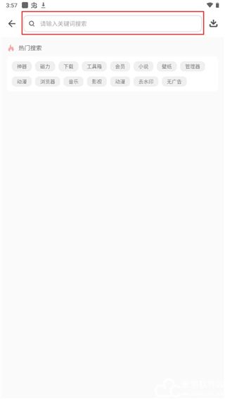 3、点击搜索框,进入热门搜索界面。工具、磁力、动画、小说等门类,资源非常全面
