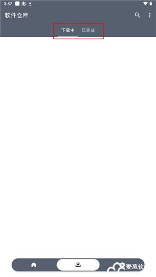 3、在下载界面中,这里分成了下载中和已完成两个页面,是记录一些正在下载或者是以下载完成的内容,小编并没有下载软件或者是游戏,所以这里是空白的