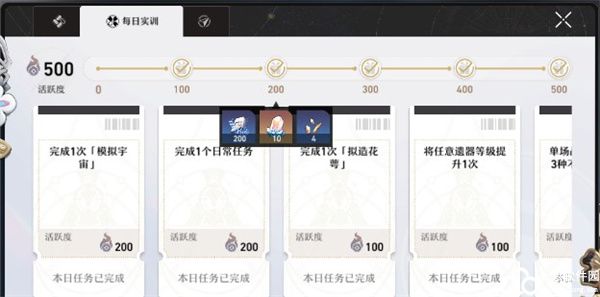 该界面有一系列引导性的任务,每完成一个可获得100经验,完成一页还可以获得星穹等奖励!