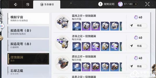 地脉和各种升级素材10体力一次,遗器本40体力一次(最开始只有地脉,慢慢会解锁升级素材和遗器本),交给ai解放双手!然后也可以买体力刷