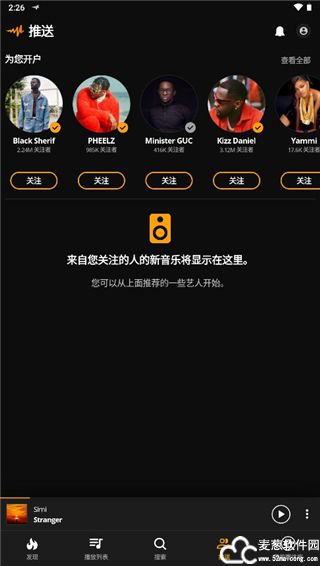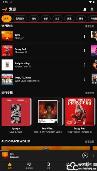 audiomack安卓版是一款专注以英文歌曲的音乐播放软件,拥有多元化的版块内容和丰富音乐分类,电子音乐,流行音乐,爵士,嘻哈,小提琴等,只要是你想听的,在这里都可以找到,用户可以在任何时间听自己喜欢听的歌曲,软件中有着大量来自不同国家的热门歌曲,流行榜单,热门榜单等,全部可以免费收听,无论是哪位歌手的音乐都可以找到。在audiomack中,为了帮助用户可以快速的找到自己喜欢的歌曲,还加入了搜索功能,输入艺术家,歌曲名,作者,演唱者等,系统会将所有相关内容推送给用户,使用起来非常的方便。除此之外,用户还可以对音乐进行下载缓存,能够在有WiFi的场景中进行下载,这样一来,即便是处于没有网络的情况也可以收听歌曲。