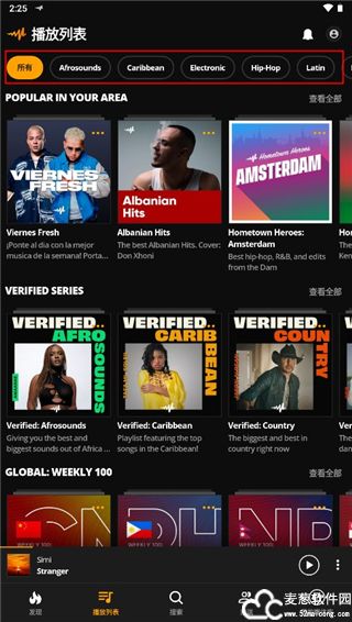 3、按心情,流派等方式浏览专业策划的播放列表。