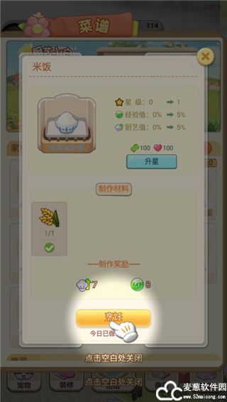 3、做饭需要一点时间,等待时间结束即可,也可以点击加速来减少做饭时间
