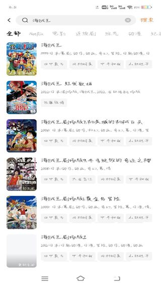 2、小编以动漫“海贼王”为例,在输入框中输入海贼王并点击搜索,软件就会将相关的资源内容推送给用户