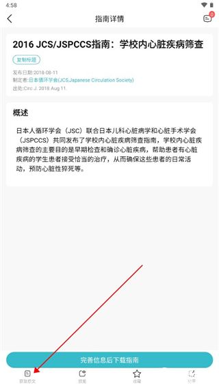 3、进入到指南详情之后,点击左下角的获取原文就可以查看文献了