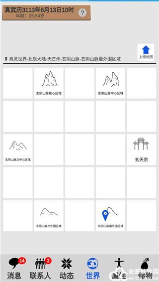 2、进入游戏之后,会先来到世界页面,在这里你可以看到自己所在的区域