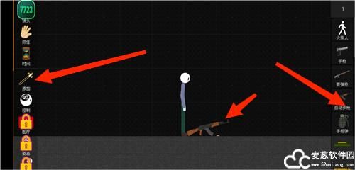 3、拖动角色的手出碰枪械,然后点击右下角的利用,随后点击屏幕就可以开始射击了