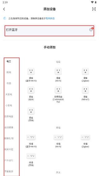2、打开定位和蓝牙功能,在左侧可以选择设备的类型,最后选择相应的设备