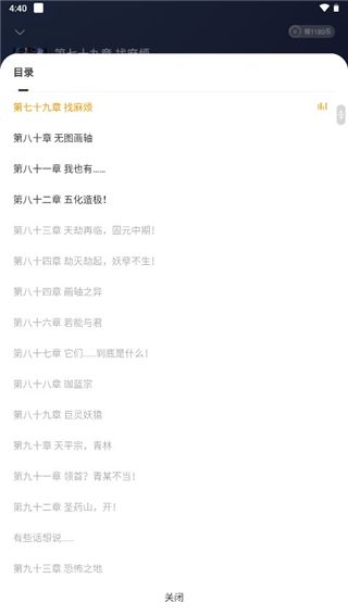 3、点击章节可以选择听书章节,听歌快进,快退等方式来调整内容