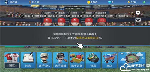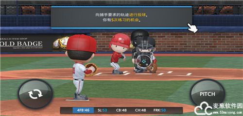 1、打开游戏,玩家需要先进行新手指导,学习一下投球和击球的方法