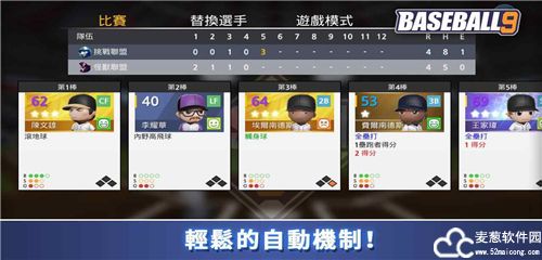 2、全垒打、三振的滋味,一定让你乐不思蜀。比赛、局数、选手的专属自动功能!