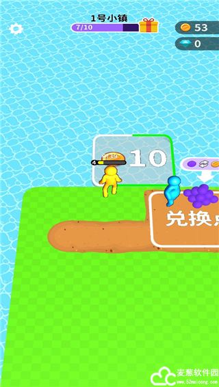 4、消耗金币可以解锁新的区域,靠近小镇就可以招募员工了