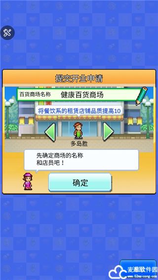 2、提交开业申请,玩家需要确定自己百货商场的名字和自己的店员,这里有着多位不同店员,他们都有着不同的能力