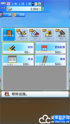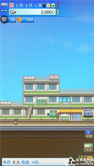3、进入游戏之后,你只有两千G的起始资金,在左下角的是商场的收益,现在,你可以开始经营自己的商场了