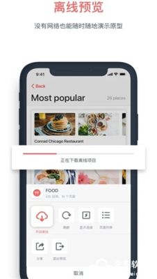 原型预览助手支持离线演示项目原型:进入预览页面,「双指点击」操作切换「离线模式」,无网络也可以轻松演示原型。