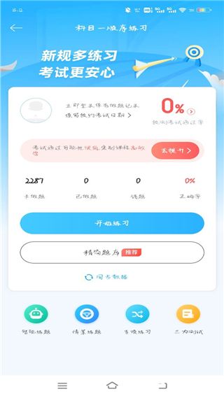 3、进入考试页面,这里会显示你刷题多少,错题和正确率,点击开始练习进行刷题