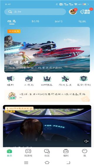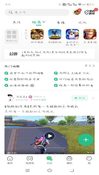 1、首先进入软件,这里为用户带来了大量的优质游戏,和平精英,王者荣耀,绝地求生等,还有着各种各样的版块功能,爆料,二次元,游戏工具等