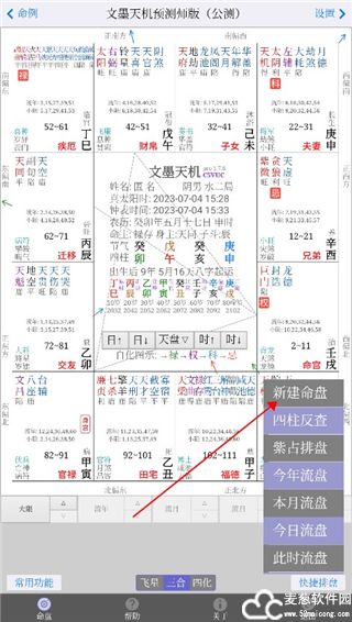 1、首先打开软件,点击右下角的快捷排盘,在点击新建命盘