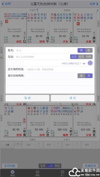 2、输入自己的姓名,生辰,完成之后点击排盘
