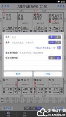 文墨天机预测师版是一款功能十分强大的排盘测算软件,以紫微斗数为基本算法,通过一个人的出生年月日来找出命宫所在,并以此来进行测算推断人的一生,人格,财富,运势,地位,并依次列出命宫,兄弟,夫妻,子女,财帛疾厄,迁移,交友,官禄,田宅,福德和父母,形成紫微斗数命盘,结合了最先进的人工智能技术打造,能够极为精准的计算出各种信息,不过紫微斗数涉及的方面实在太过广泛,人的一生也会经历各种各样的变换,因此测算出的内容只能作为参考。在文墨天机中,除开测算命盘之外,还提供了四柱反查,紫占排盘,今年流盘,本月流盘,今日流盘和此时流盘功能,让用户可以使用多种不同的方式进行测算,从而得到一个更加准确的结果。
