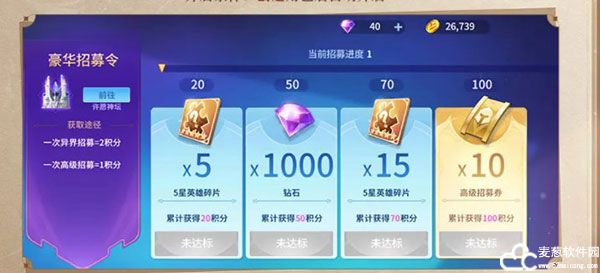 在本期测试活动期间,指挥官们通过活动最多可获得21100结石、140个高级招募券、10个异界招募券和300个5星英雄碎片!指挥官们可用2500钻石在高级招募中进行一次十连招募哦!