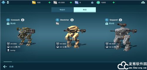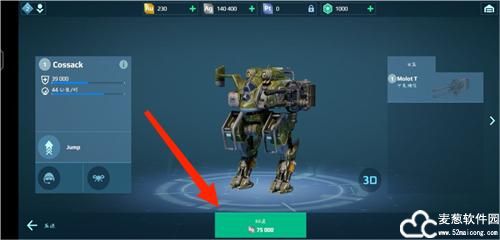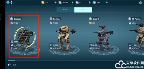 3、在商店中有着各种各样的机甲,选择一个想要的机甲,如Cossack,点击进入购买页面,点击下方的购买即可