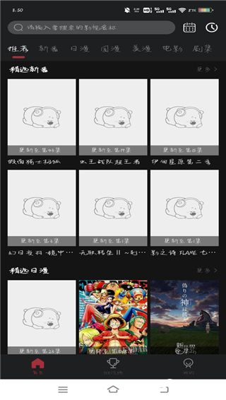1、首先进入软件,这里为用户带来了大量的精品动漫,点击进入即可观看,在上方的搜索栏中可以根据关键词进行搜索