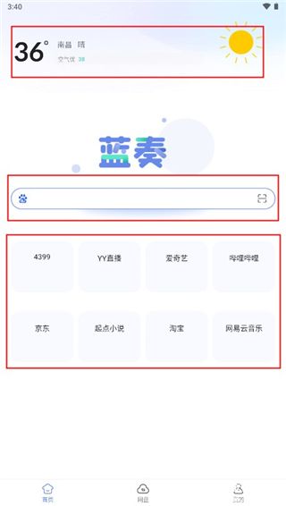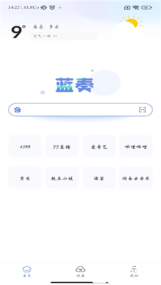 1、首先进入软件,在上方可以查看最近的天气,在下方有着4399,YY直播,爱奇艺等版块,点击可以直接前往对应页面,点击中间的搜索栏可以进行搜索
