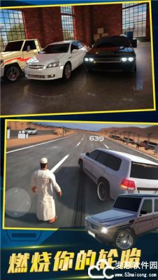 赛车竞速为主题的模拟模拟驾驶类游戏,采用了顶尖的3D游戏引擎打造,拥有高清精致的游戏画面和丰富的场景地图,并为玩家带来了大量不同风格的赛车,全部都可以自由使用,同时,游戏中还加入了改装玩法,玩家可以使用各种材料来对赛车进行改装设计,调试并提升赛车的性能,设计个性化的形象等,打造出一辆全新的赛车。在中东豪车模拟器中,为玩家带来了三种玩法模式,追击模式,单人模式和多人模式,每一种模式的玩法都不一样,如追击模式中,玩家将会扮演一名逃犯,需要驾驶赛车逃离警察的追捕,一旦被警察抓住或者是车辆受损严重就会导致游戏结束,在这个过程中,玩家可以通过漂移过弯等高难度操作来增加自己的得分。