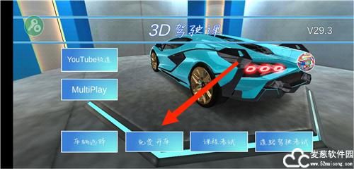 1、首先打开游戏,这里有免费开车,课程考试和道路驾驶考试,点击免费开车