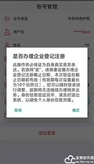 5、注册成功后,系统会弹出一个是否办理企业登记注册,根据用户的个人需求来点击确定或者取消