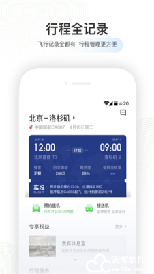 3、航班动态:第一个能够查到整合了登机口信息航班动态的软件,第一个支持前序航班状态自由查询查询的软件,支持本人关注或为好友订阅。