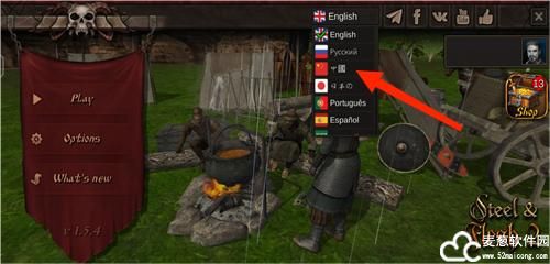1、首先进入游戏,系统的默认语言是英语,点击上方的English可以打开语言菜单