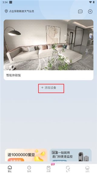 1、首先打开软件,我们要做的第一件事就是添加智能设备,点击页面中间的添加设备
