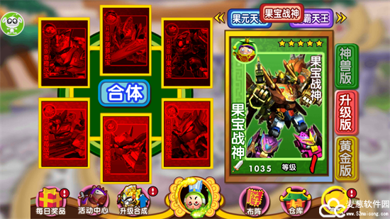 3、点击主页的小果丁可以返回首页,再次点击可对果宝进行合体,成为果宝战神、果园天尊、魔霸天王