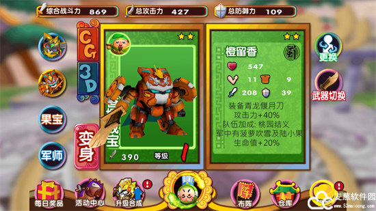 1、果宝三国最新正版游戏采用3d渲染,特效华丽