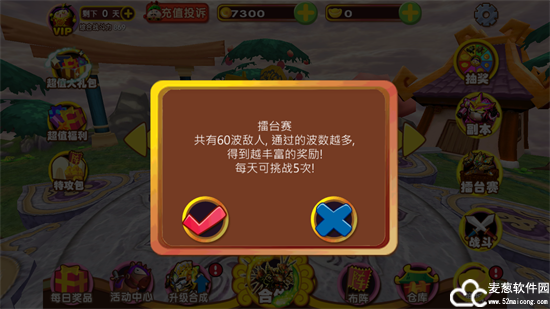 7、主页的擂台赛可进入擂台挑战,每日可挑战5次,通过可得到丰厚的奖励