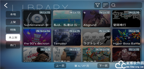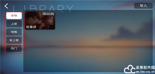 2、在拥有选择页面中,这里有本地,上架,特殊,未上架和热门五个版块,本地是已下载的音乐,我们可以在其他的四个版块中寻找音乐演奏,即便是未上架的音乐也可以演奏