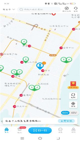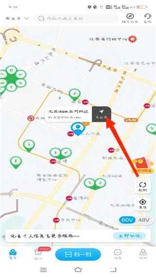 第一步:打开软件的定位功能,软件会在地图上显示用户的位置和换电池的场地