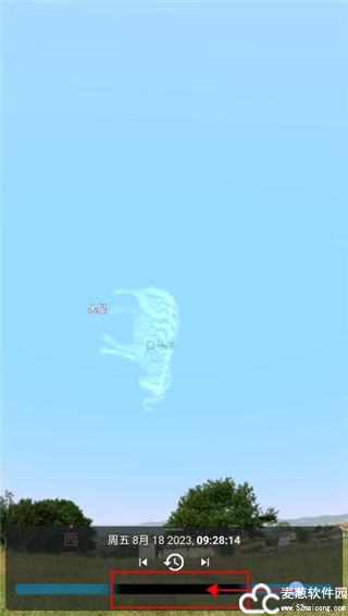 1、首先打开软件,因为当前时间为白天,所以画面呈现也是白天,点击右下角的时间会出现一个进度条,黑色部分代表晚上,将小球拖入黑色部分