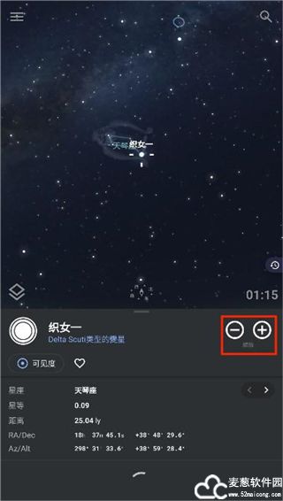 4、如果是无法直接点击的星体,你可以在右上角的搜索中输入星体的名字,比如织女,就会出现相关的信息了