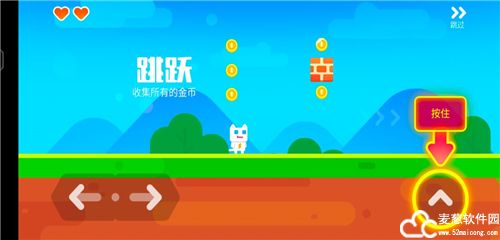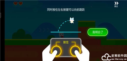 2、点击右侧的跳跃键可以控制角色跳跃,长按比点击跳的更高