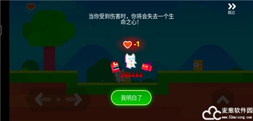 5、当玩家受伤时就会损失一个生命之心,玩家共有两个,全部损失之后会死亡