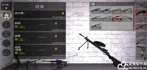 1、首先进入游戏,在页面的右侧是大量的枪械,中间是枪械的拆卸与组装过程演示,左侧的结果则是玩家的游戏记录