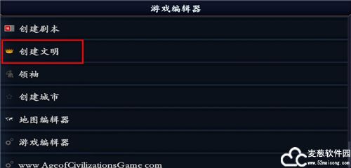 2、进入编辑器页面,这里有着大量的功能,找到并选择创建文明选项