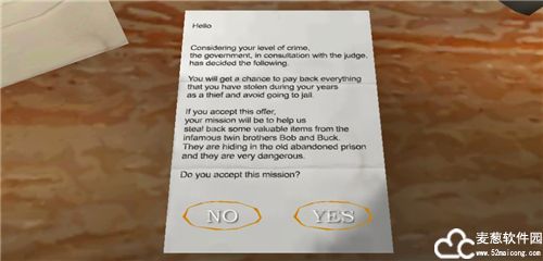 1、进入游戏,我们需要接受一件任务,需要从一对双胞胎手中偷回宝物,这个任务必须要接受,不然就会被关进大牢,点击YES接受任务