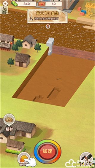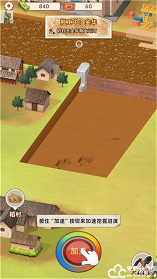 4、在工人挖掘的时候,点击下方的加速可以加快挖掘进度
