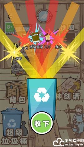 2、在废弃的垃圾桶里拾取材料,打造强大的神兵。